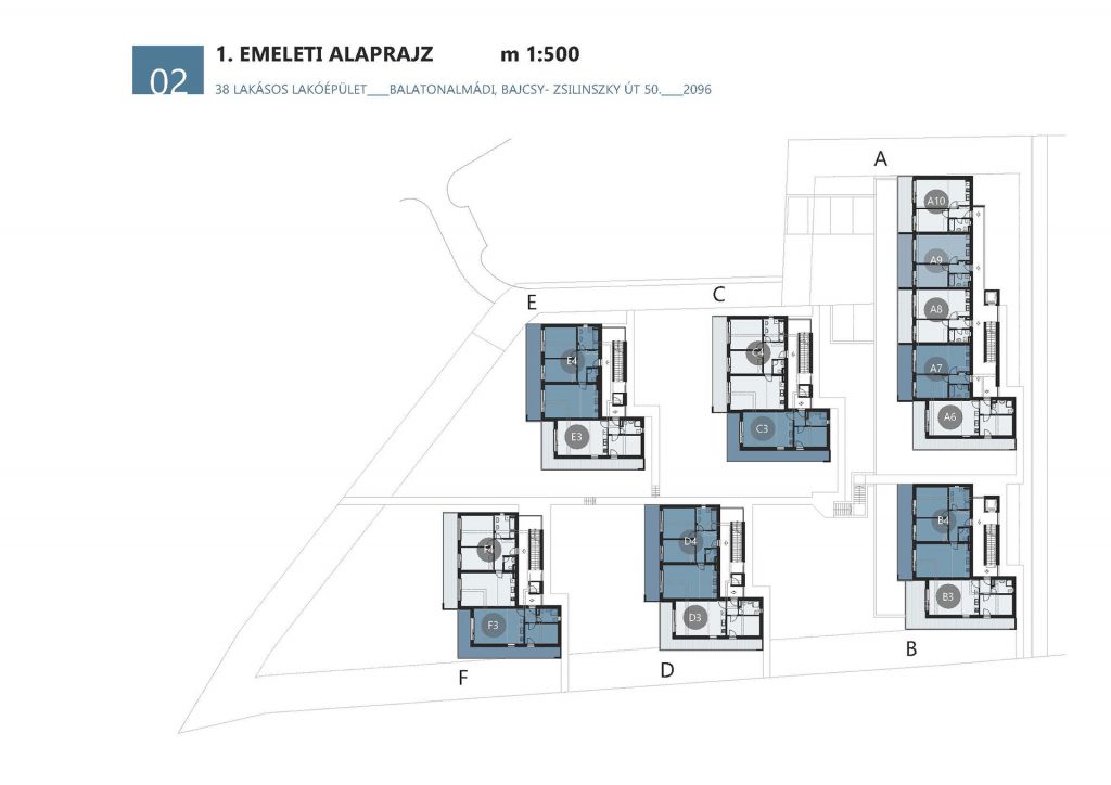 6 tömbből álló, 36 apartmant magába fogalaló épületegyüttes Balatonalmádi központo részén.