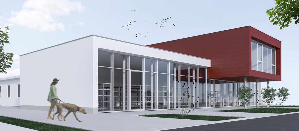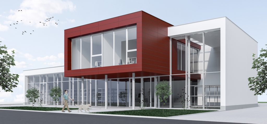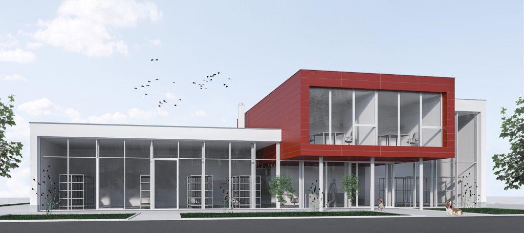 Üzletből, raktárból és irodából álló kereskedlmi épület Győrben.