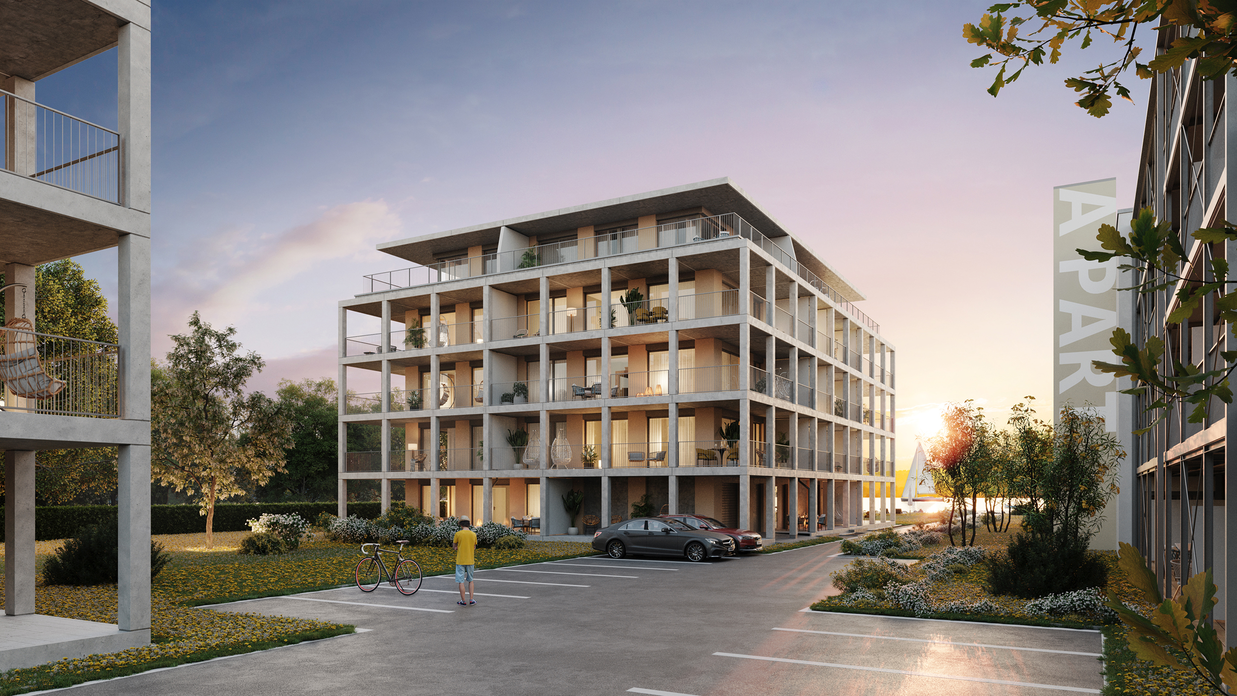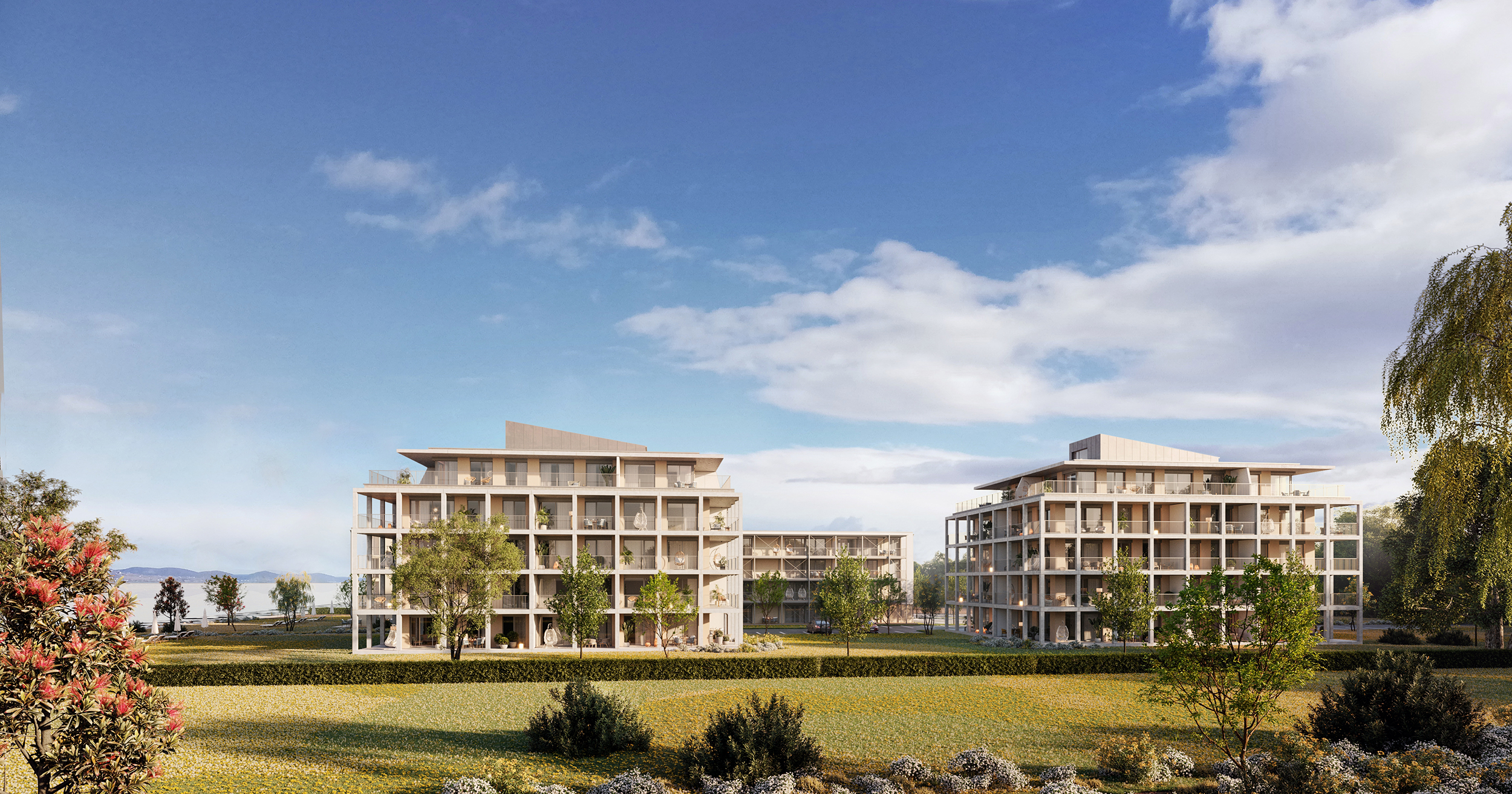 Öt ütemből álló lakóépület fejlesztés Balatonmáriafürdőn.